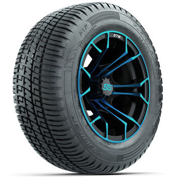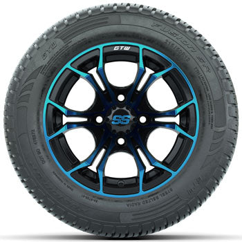 GTW Blue/Black Spyder 12 in Wheels with 215/50-R12 Fusion S/R Street Tires - Set of 4