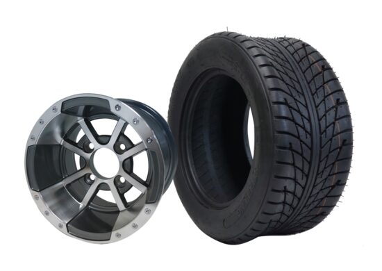 SGC 10" Storm Trooper Machined/Gunmetal Wheel - Aluminum Alloy / STEELENG 205/50-10 Low Profile Tire DOT Approved Tires Combo - Set of 4