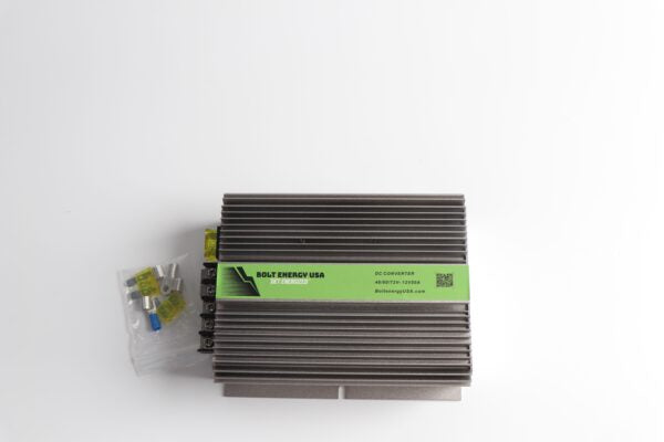 Our Bolt Energy USA DC/DC voltage reducer components are made with the finest Heavy-duty materials. They are an essential need for all golf cart accessories such as headlights, horns, stereos, etc. for upgraded and stock/OEM Golf Carts, LSV vehicles. This reducer gives that extra current/AMPs needed for upgraded stereos, winches, etc.