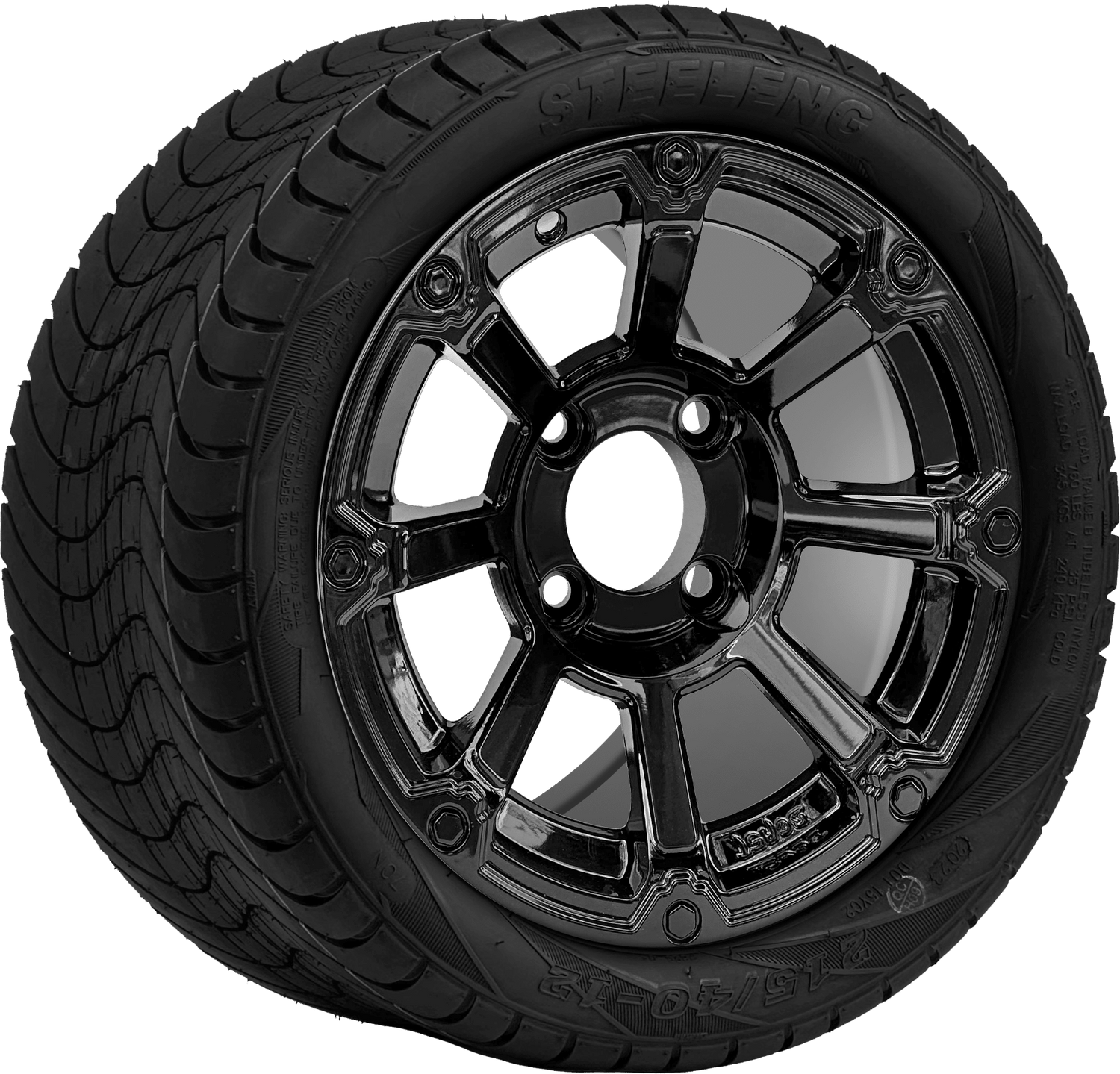 SGC 12 " Cyclops Glossy Black Wheel - Aluminum Alloy / STEELENG 215/40-12 Low Profile Tire DOT Approved Tires Combo - Set of 4