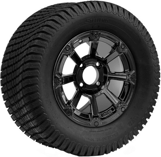 SGC 12 " Cyclops Glossy Black Wheel - Aluminum Alloy / STEELENG 23 "x10.5 "-12 " Turf Tire Tires Combo - Set of 4