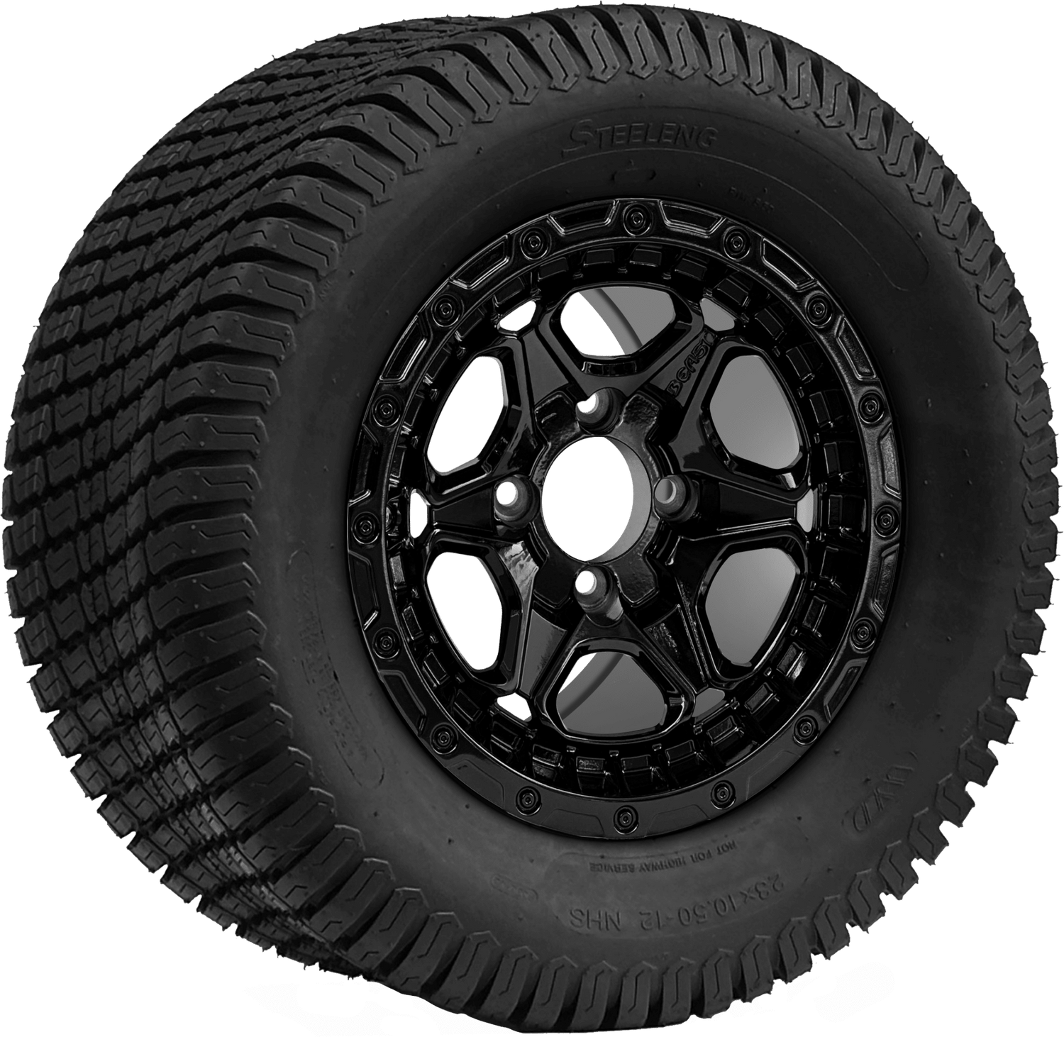 SGC 12 " Grizzly Glossy Black Wheel - Aluminum Alloy / STEELENG 23 "x10.5 "-12 " Turf Tire Tires Combo - Set of 4