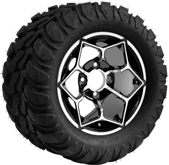 SGC 12 " Hammerhead Machined/Black Wheel - Aluminum Alloy/ STEELENG 22 "x11 "-12 " Mud Terrain / All Terrain Tire DOT Approved Tires Combo - Set of 4