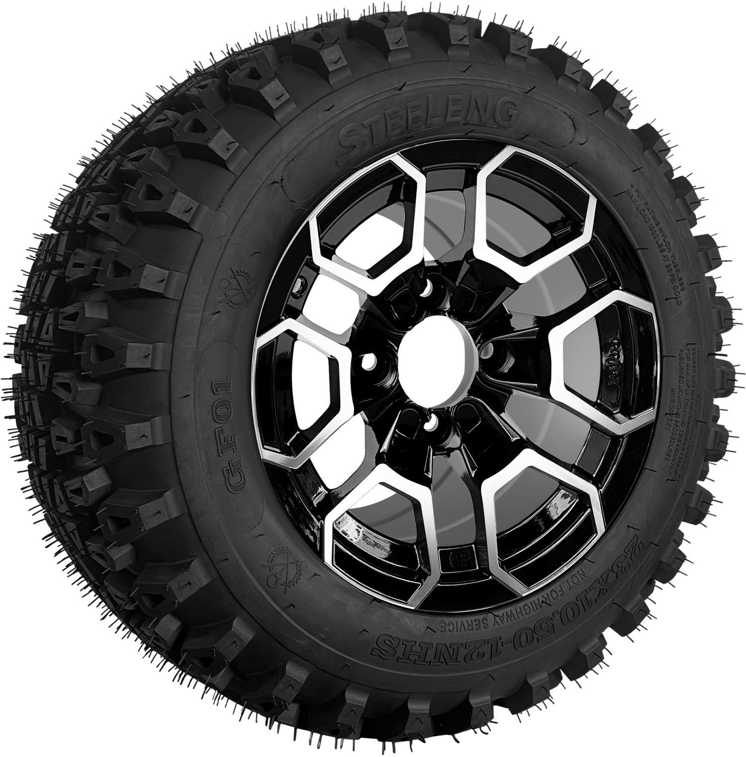 SGC 12 " Talon Machined/Black Wheel - Aluminum Alloy / STEELENG 23 "x10.5 "-12 " All Terrain Tire Tires Combo - Set of 4