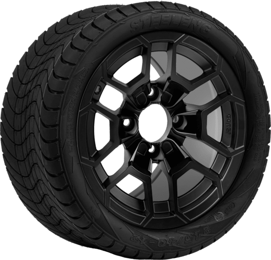 SGC 12 " Talon Matte Black Wheel - Aluminum Alloy / STEELENG 215/40-12 Low Profile Tire DOT Approved Tires Combo - Set of 4