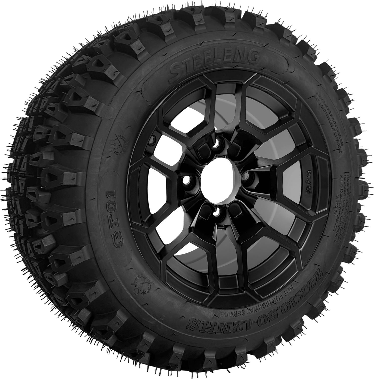 SGC 12 " Talon Matte Black Wheel - Aluminum Alloy / STEELENG 23 "x10.5 "-12 " QH All Terrain Tire Tires Combo - Set of 4