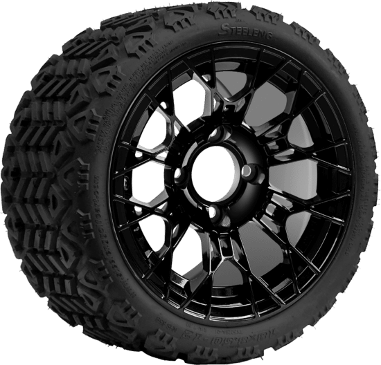 SGC 12 " Tarantula Glossy Black Wheel - Aluminum Alloy / STEELENG 18 "x8.5 "-12 " All-Terrain Tire DOT approved Tires Combo - Set of 4