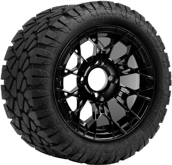SGC 12 " Tarantula Glossy Black Wheel - Aluminum Alloy / STEELENG 22 "x10.5 "-12 " STINGER All Terrain Tire DOT approved Tires Combo - Set of 4