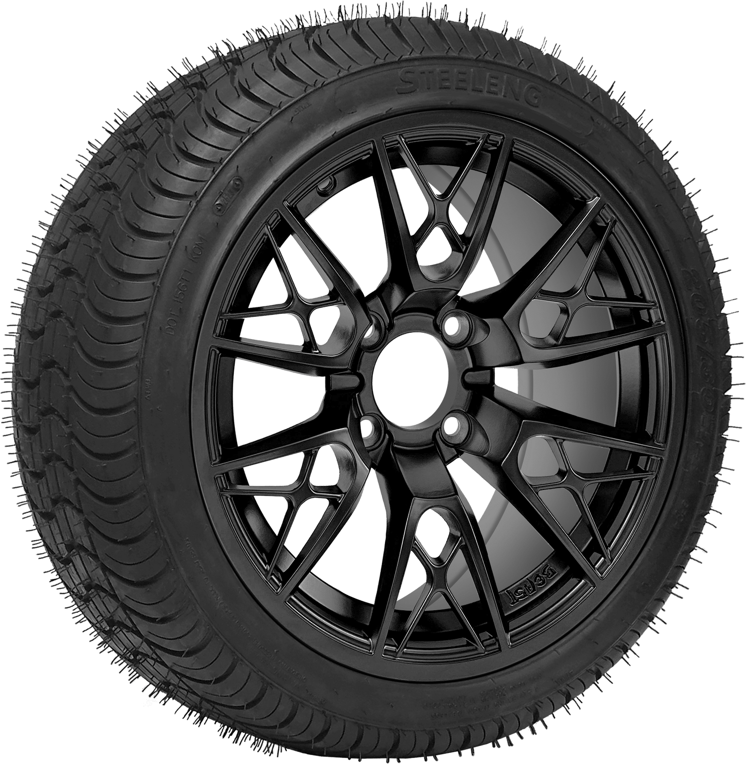 SGC 14 " Saber Tooth Matte Black Wheel - Aluminum Alloy / STEELENG 205/30-14 QH Low Profile Tire DOT Approved Tires Combo - Set of 4