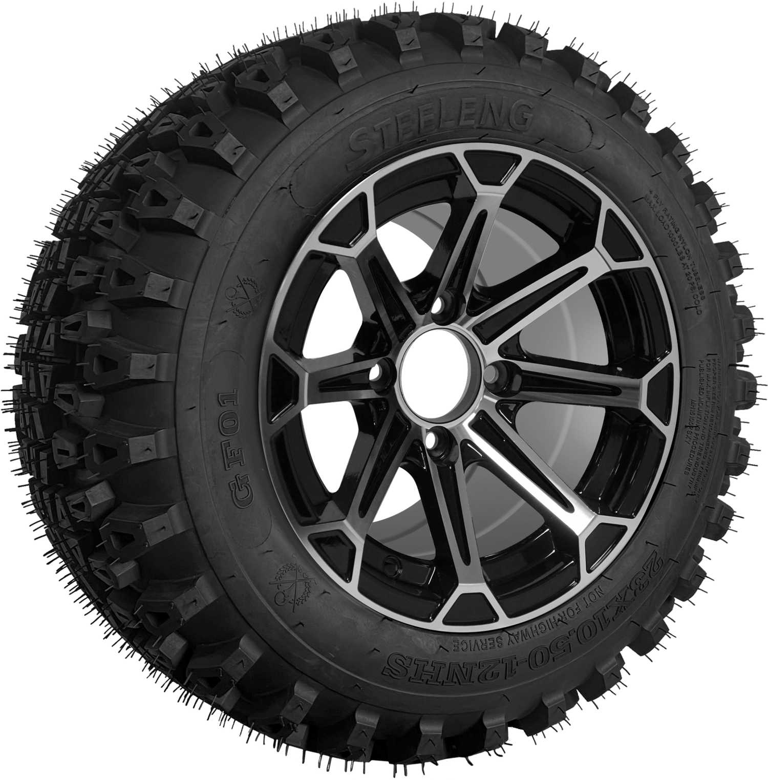 SGC 12" Fang Machined/Black Wheel - Aluminum Alloy / STEELENG 23"x10.5"-12" QH All Terrain Tire Tires Combo - Set of 4