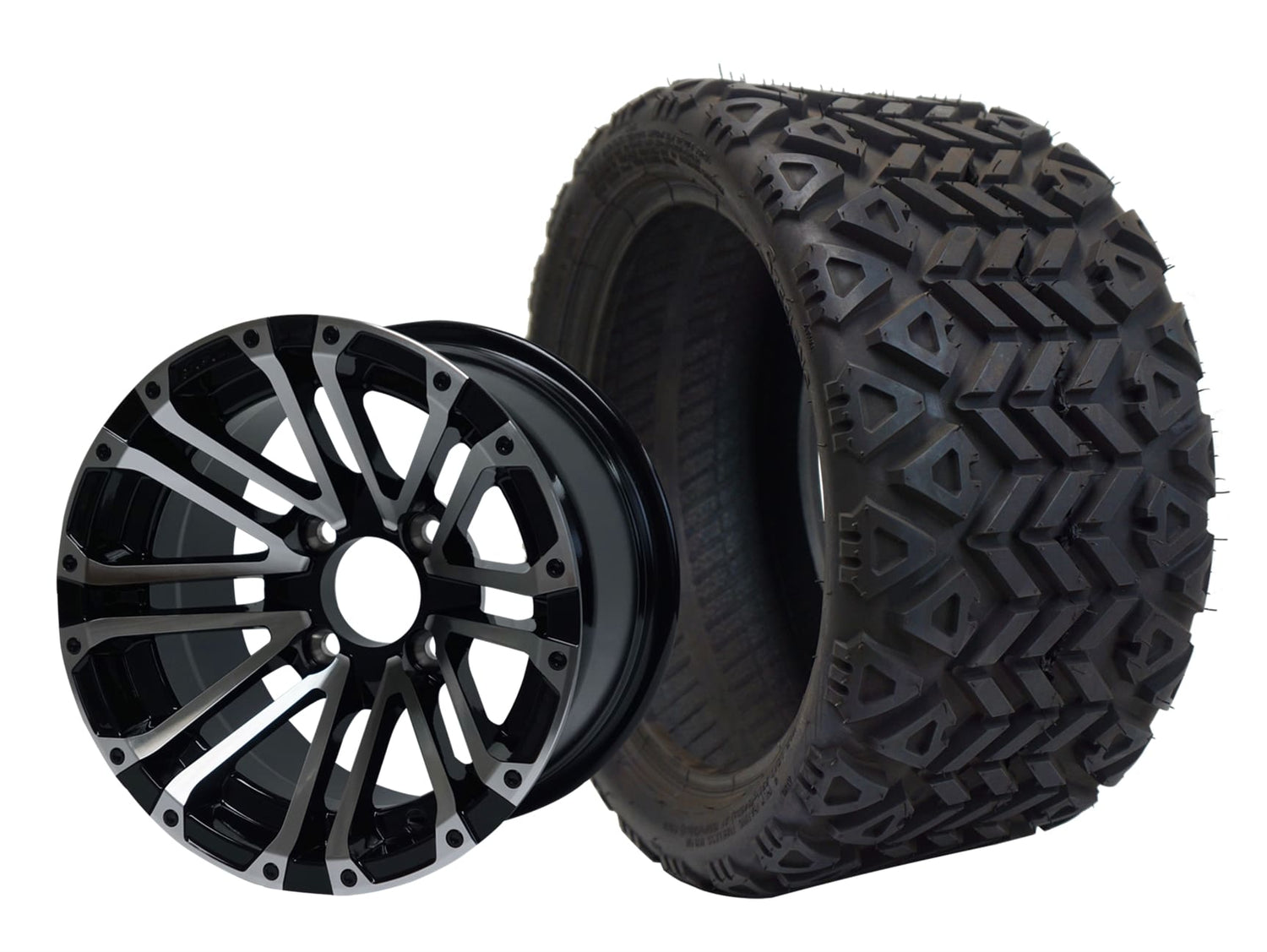 SGC 12" Lancer Machined/Black Wheel - Aluminum Alloy / STEELENG 18"x8.5"-12" All-Terrain Tire DOT approved Tires Combo - Set of 4