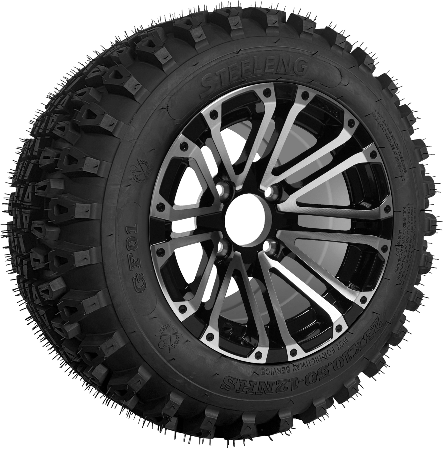 SGC 12" Lancer Machined/Black Wheel - Aluminum Alloy / STEELENG 23"x10.5"-12" QH All Terrain Tire Tires Combo - Set of 4