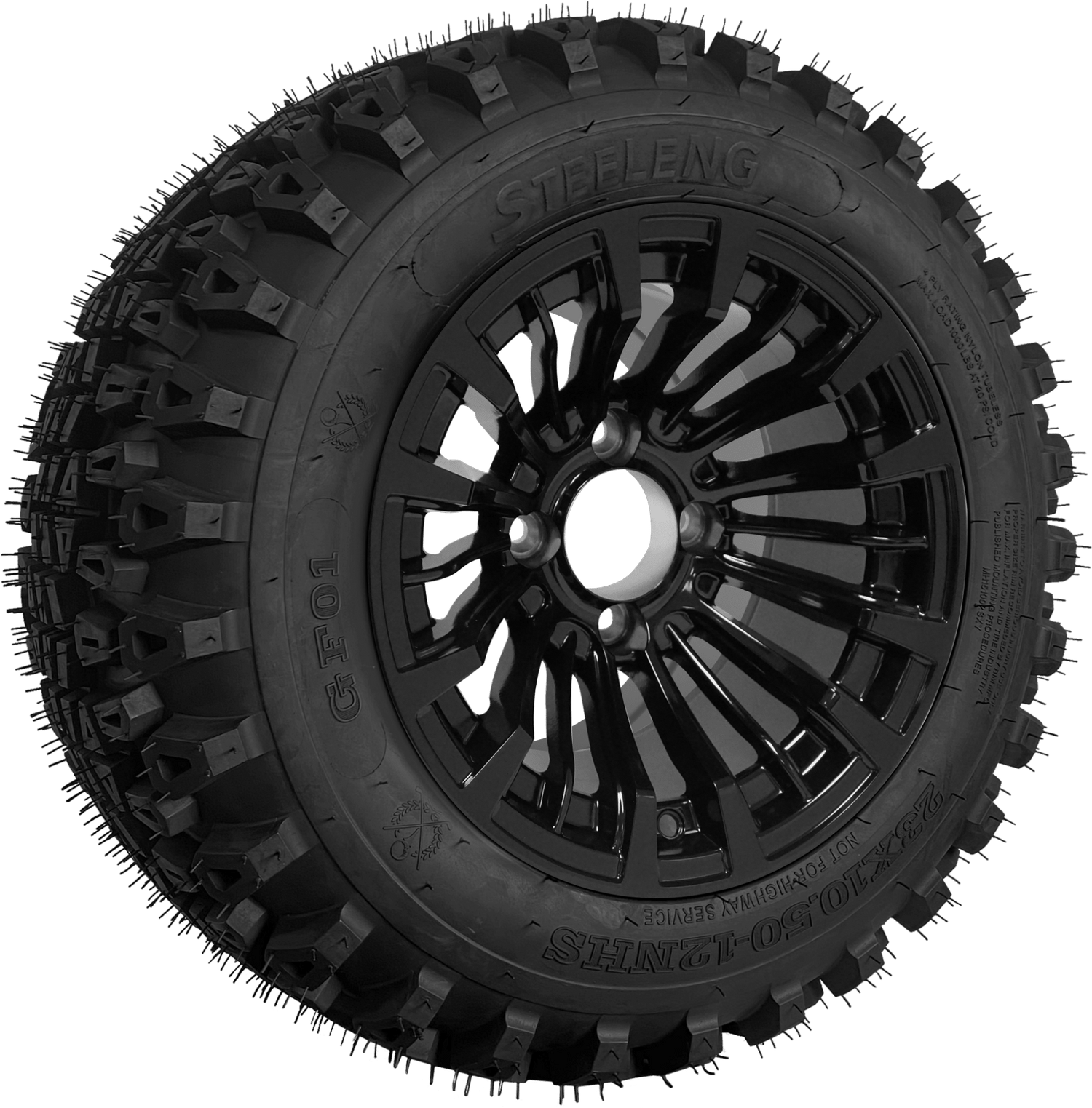 SGC 12" Matador Glossy Black Wheel - Aluminum Alloy / STEELENG 23"x10.5"-12" QH All Terrain Tire Tires Combo - Set of 4