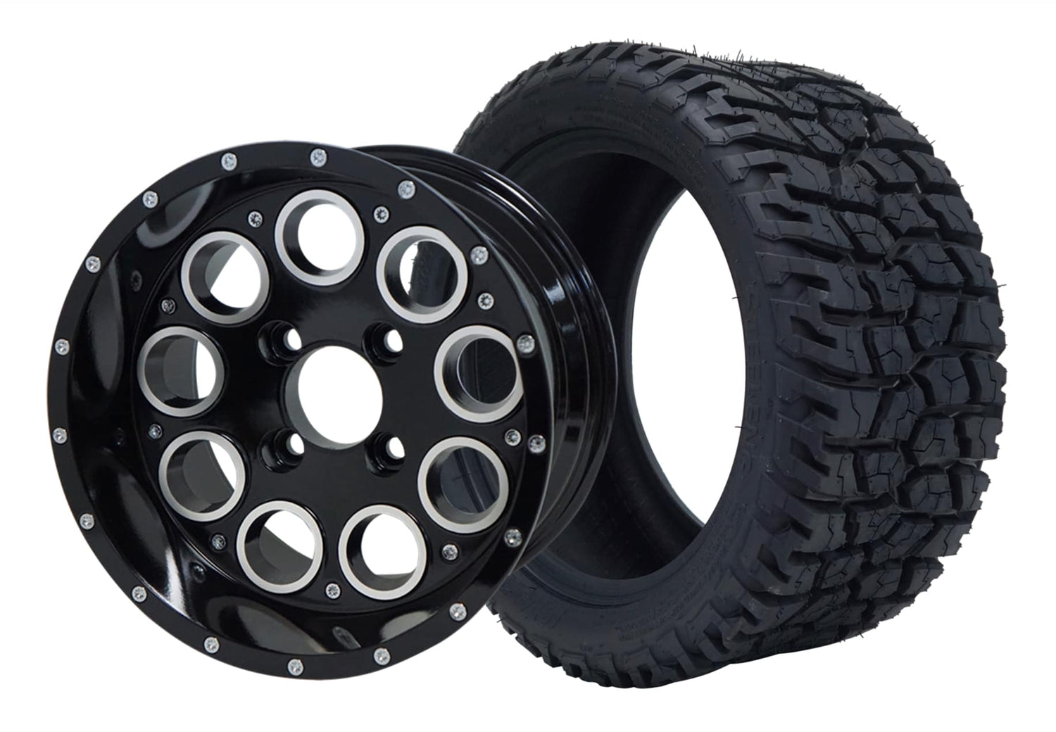 SGC 12" Pioneer Glossy Black Wheel - Aluminum Alloy / STEELENG 215/40-12 GATOR Hybrid Low Profile / All Terrain Tire DOT Approved Tires Combo - Set of 4