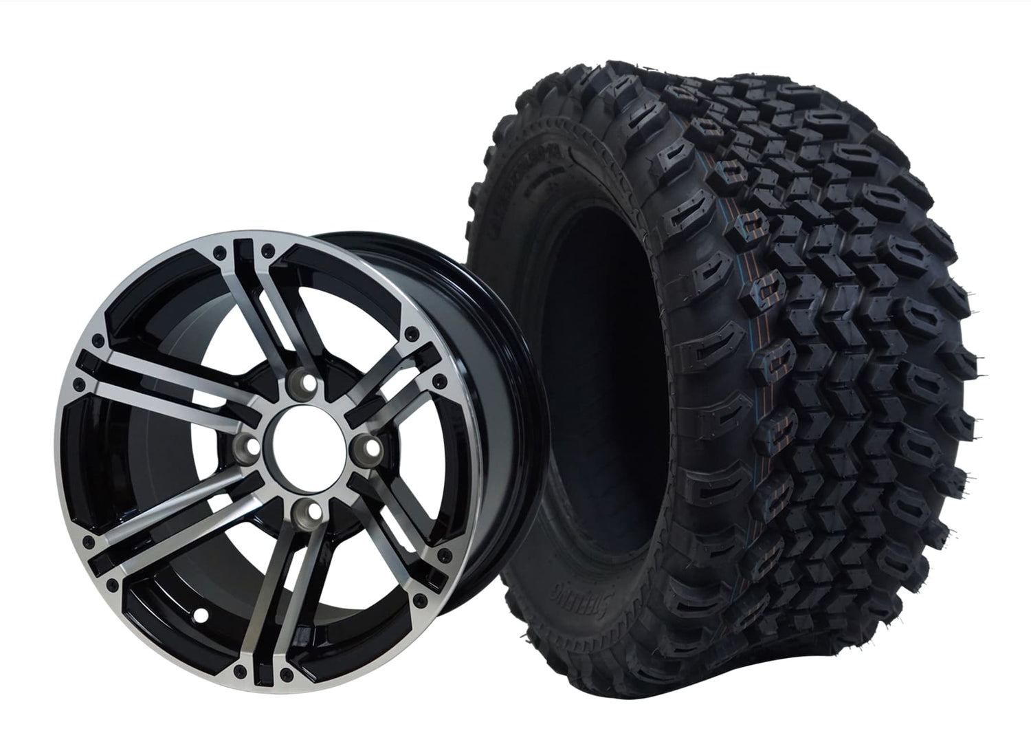 SGC 12" Terminator Machined/Black Wheel - Aluminum Alloy / STEELENG 23"x10.5"-12" All Terrain Tire Tires Combo - Set of 4