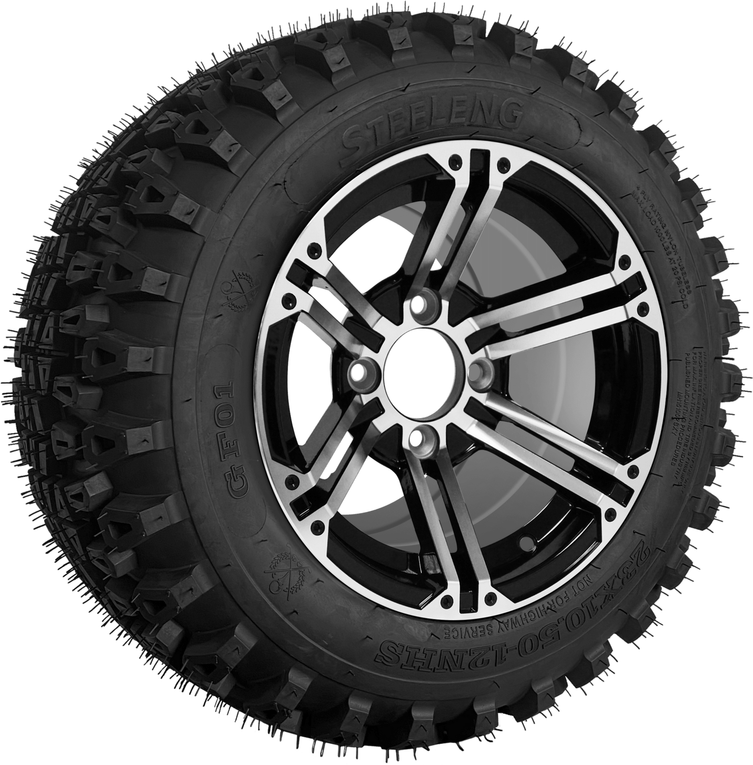 SGC 12" Terminator Machined/Black Wheel - Aluminum Alloy / STEELENG 23"x10.5"-12" QH All Terrain Tire Tires Combo - Set of 4