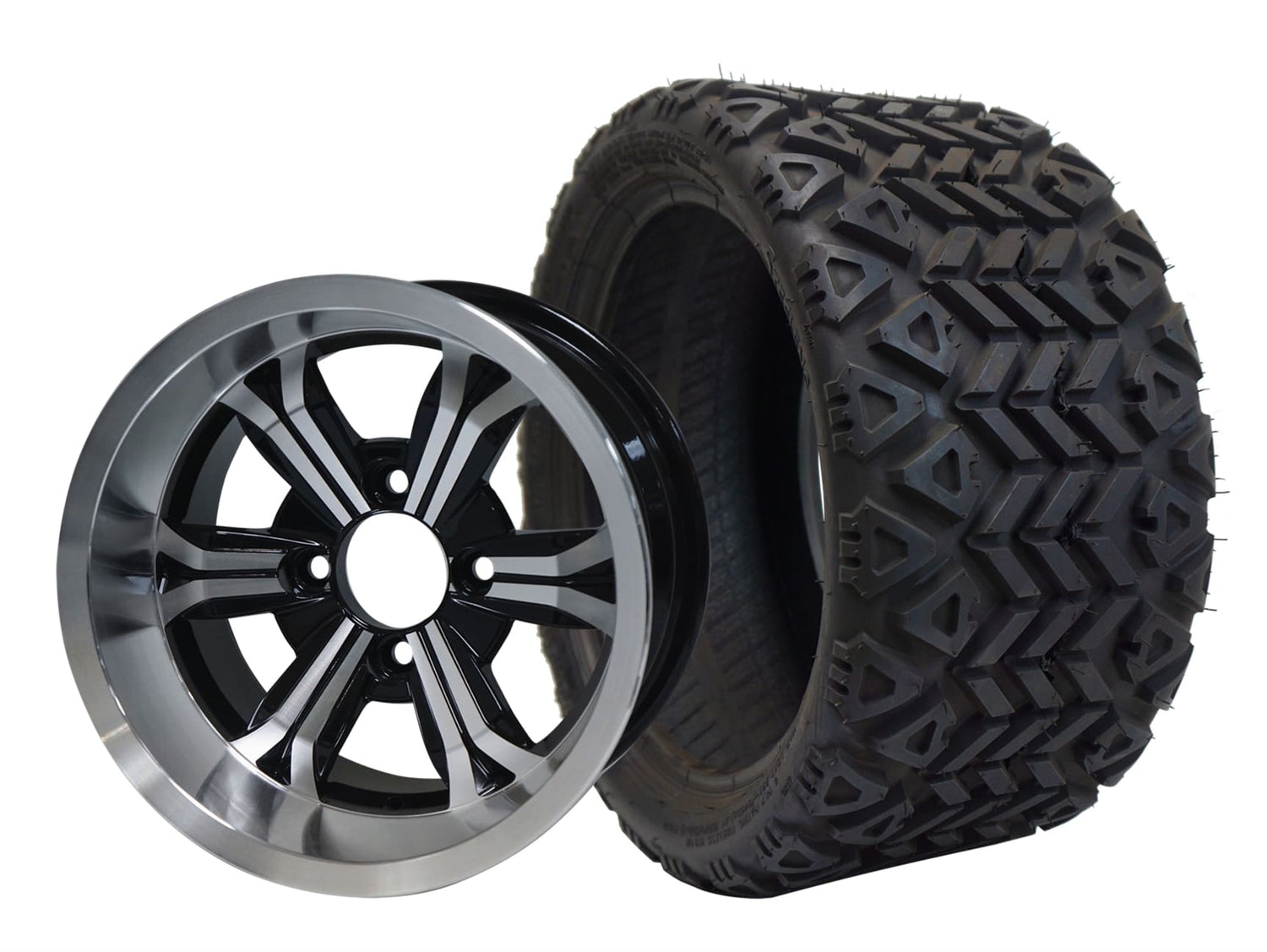 SGC 12" Transformer Machined/Black Wheel - Aluminum Alloy / STEELENG 20"x10"-12" All Terrain Tire DOT approved Tires Combo - Set of 4