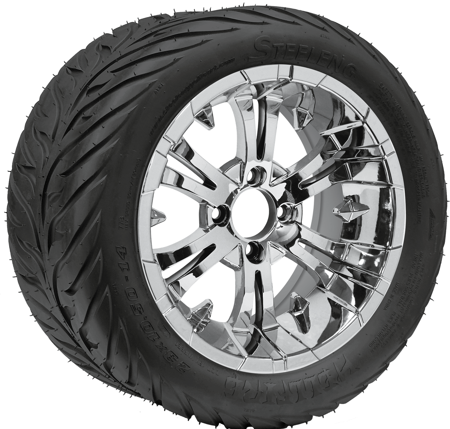 SGC 14" Vampire Chrome Wheel - Aluminum Alloy / STEELENG 23"x10.5"-14" HELLFIRE Street Tire DOT Approved Tires Combo - Set of 4