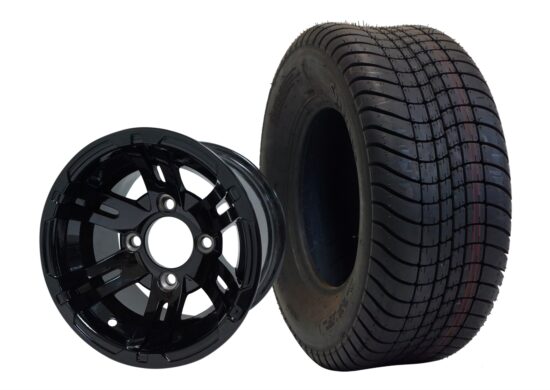 SGC 10" Bulldog Glossy Black Wheel - Aluminum Alloy / STEELENG 205/65-10 Comfort Ride Street Tire DOT approved Tires Combo - Set of 4