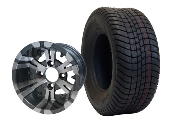 SGC 10" Vampire Machined/Gunmetal Wheel - Aluminum Alloy / STEELENG 205/65-10 Comfort Ride Street Tire DOT approved Tires Combo - Set of 4
