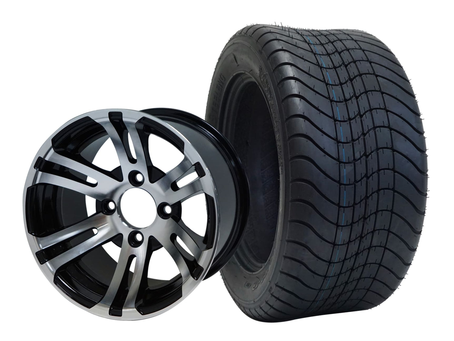 SGC 12" Bulldog Machined/Black Wheel - Aluminum Alloy / STEELENG 215/50-12 Comfort Ride Street Tire DOT Approved Tires Combo - Set of 4