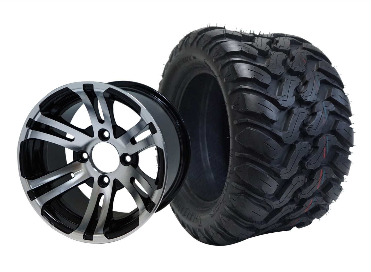 SGC 12" Bulldog Machined/Black Wheel - Aluminum Alloy / STEELENG 22"x11"-12" Mud Terrain / All Terrain Tire DOT Approved Tires Combo - Set of 4