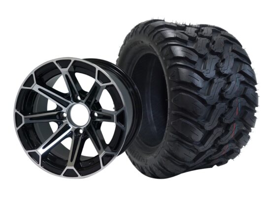 SGC 12" Fang Machined/Black Wheel - Aluminum Alloy / STEELENG 22"x11"-12" Mud Terrain / All Terrain Tire DOT Approved Tires Combo - Set of 4