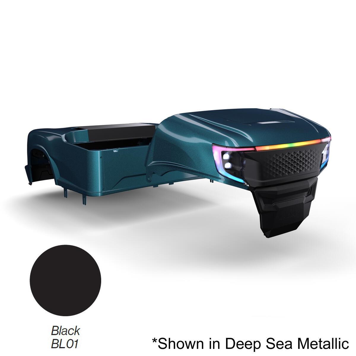 Engineered to seamlessly integrate with the E-Z-GO RXV, the Apex is designed to exceed standards and break the mold. Staying true to the innovative MadJax spirit, the Apex body stands out with its rugged styling, cutting-edge technology, and modular set up. Top-tier lighting is integrated into the design as vibrant, sequencing colors travel along the cowl.Fitment:Make & Model: E-Z-GO RXVYear: 2008 - 2022Fits Both Gas & Electric ModelsFull Body Kit Includes:Painted Glossy Black Front cowl with continuous LUX DRL & black grillePainted Glossy Black Rear body with bagwellFull LUX Light Kit standard, with added reverse lightsPlease Note: Color of swatch is what you will receive / Deep Sea Metallic Shown for referenceFeatures:Exclusive Front Design:Unique fascia & automotive-style grilleModular Body Design:Premium, automotive-inspired, multi-piece unit, available in mold-in color & paint finishPractical:Compatible with MadJax Genesis series & GTW Mach Series rear seat kitsLighting:Continuous DRL with RGB3 sequencing colors along entire length of the cowlLED LUX Light Kit:Automotive-style projector lights with RGB3 & hi/lo beam functionalityEco-friendly:Injection-molded body made of durable and 100% recyclable polypropylene plasticPlease Note: Body kit only, does not include base golf car