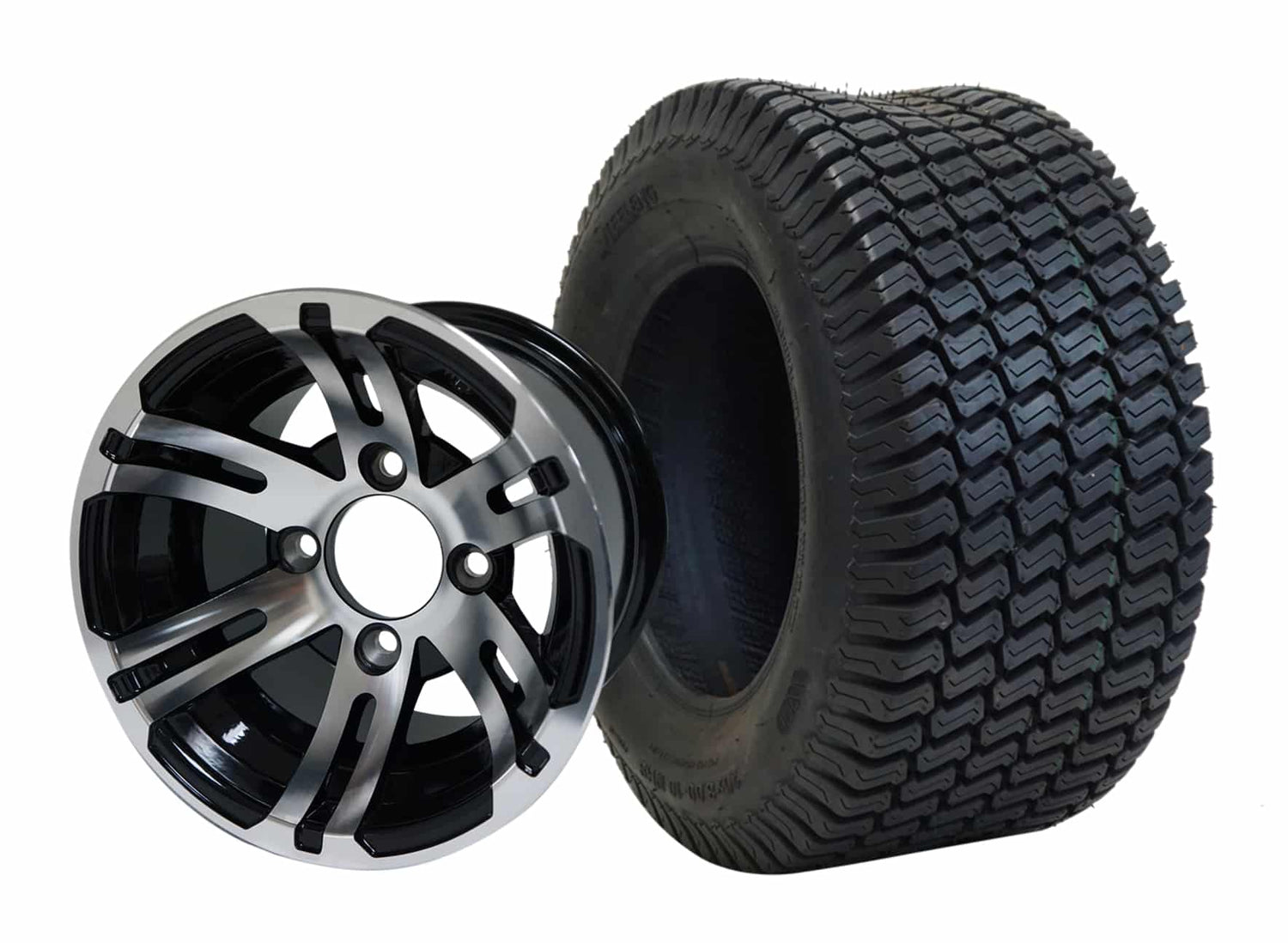 SGC 10" Bulldog Machined/Black Wheel - Aluminum Alloy / STEELENG 20"x8"-10" Turf Tire Tires Combo - Set of 4
