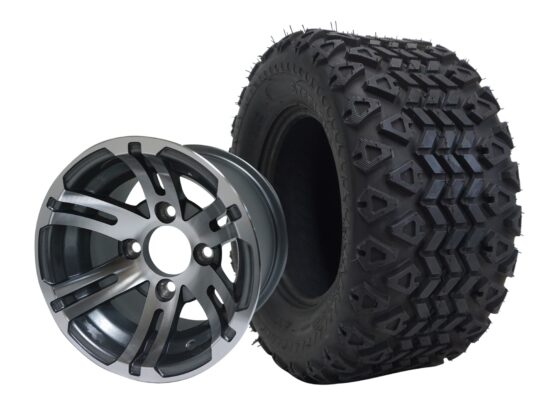 SGC 10" Bulldog Machined/Gunmetal Wheel - Aluminum Alloy / STEELENG 18"x9"-10" All Terrain Tire DOT approved Tires Combo - Set of 4