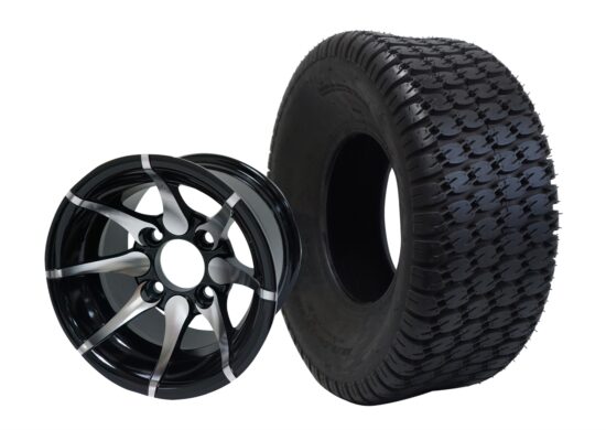 SGC 10" Kraken Machined/Black Wheel - Aluminum Alloy / STEELENG 22"x9.5"-10" Turf Tire Tires Combo - Set of 4