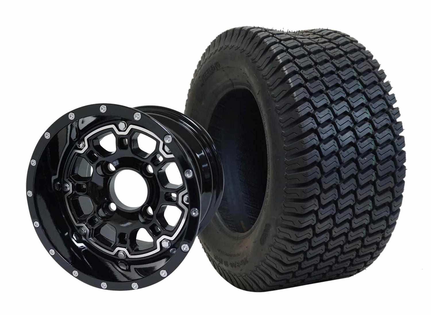 SGC 10" Panther Glossy Black Wheel - Aluminum Alloy / STEELENG 20"x8"-10" Turf Tire Tires Combo - Set of 4