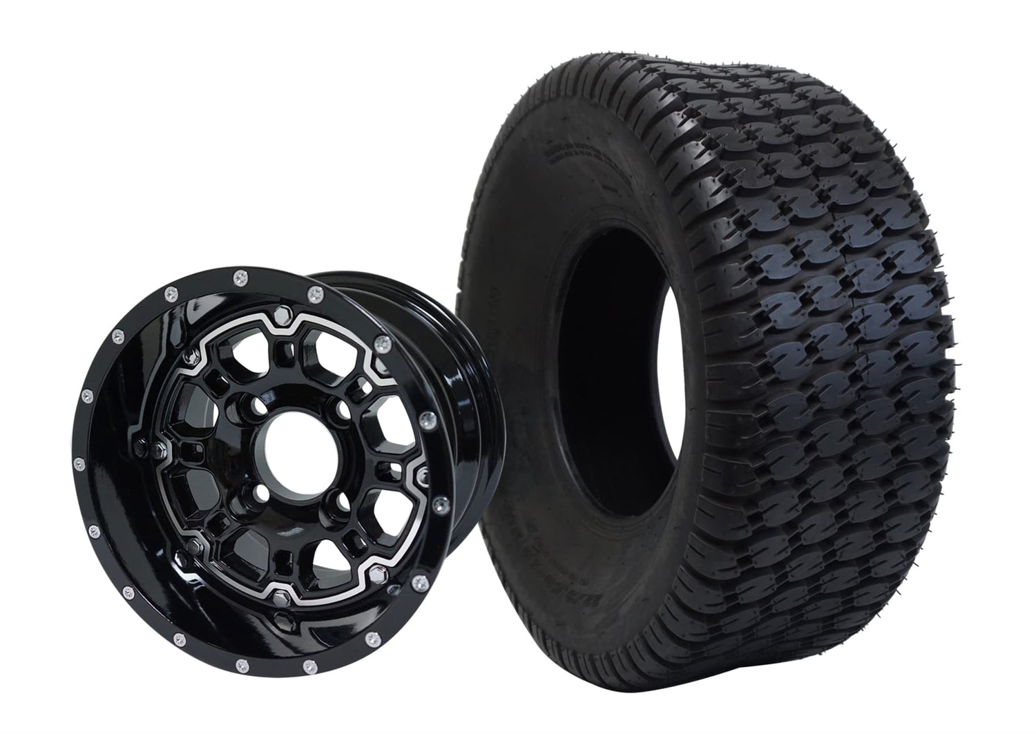 SGC 10" Panther Glossy Black Wheel - Aluminum Alloy / STEELENG 22"x9.5"-10" Turf Tire Tires Combo - Set of 4