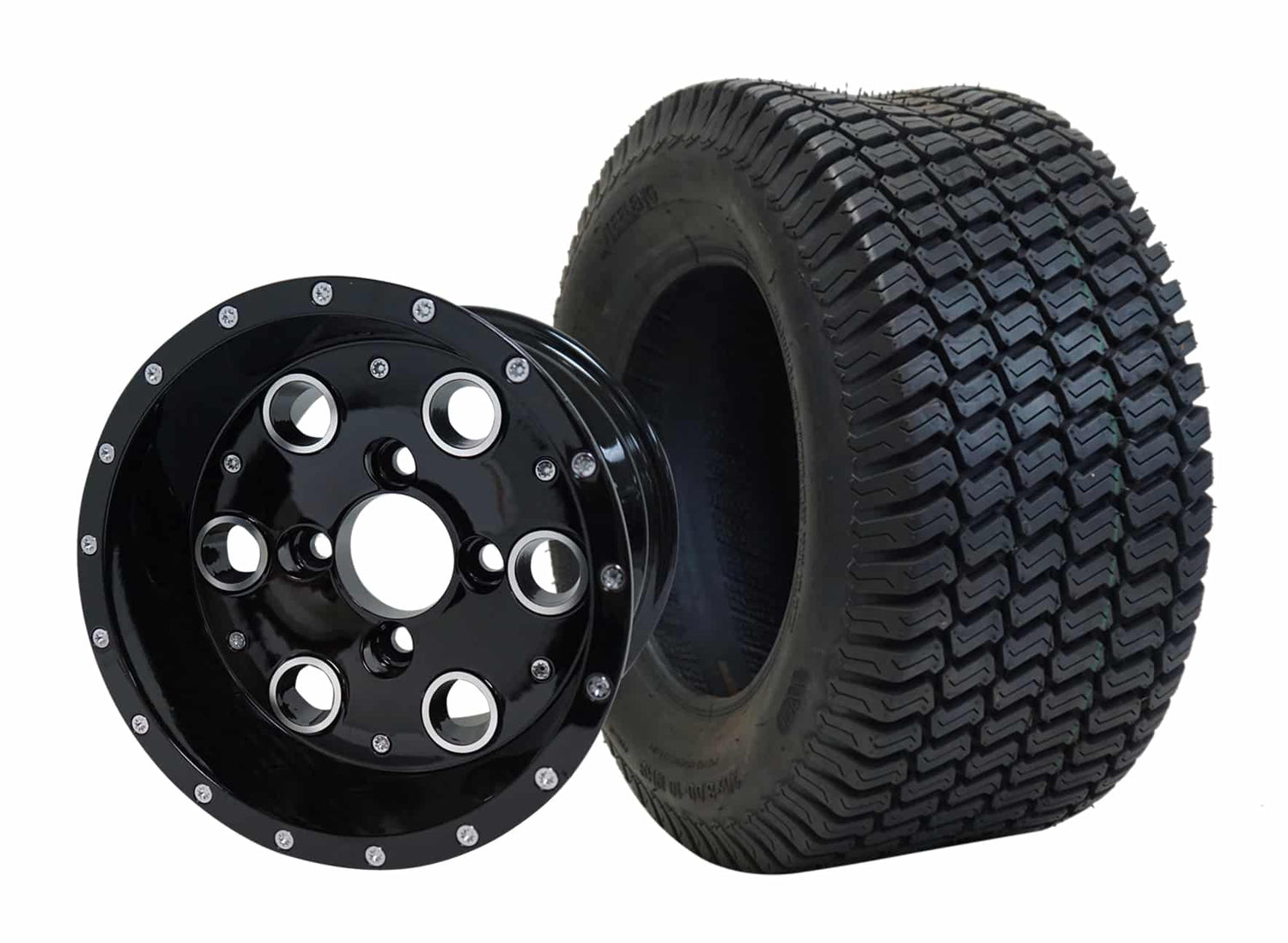 SGC 10" Pioneer Glossy Black Wheel - Aluminum Alloy / STEELENG 20"x8"-10" Turf Tire Tires Combo - Set of 4