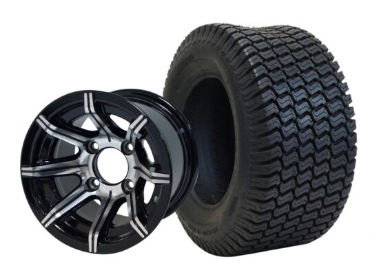 SGC 10" Spider Machined/Black Wheel - Aluminum Alloy / STEELENG 20"x8"-10" Turf Tire Tires Combo - Set of 4