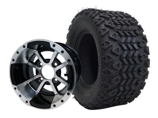SGC 10" Storm Trooper Machined/Black Wheel - Aluminum Alloy / STEELENG 18"x9"-10" All Terrain Tire DOT approved Tires Combo - Set of 4