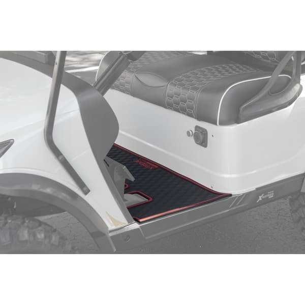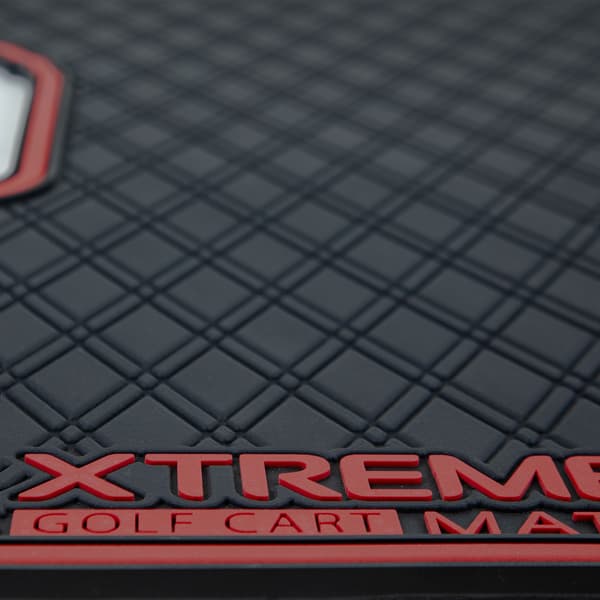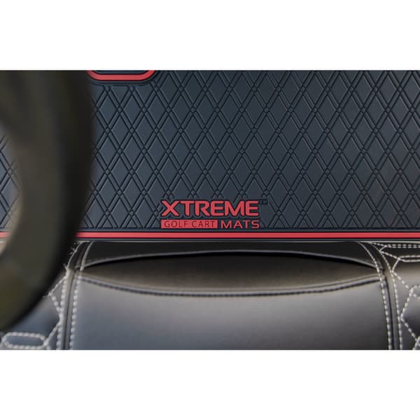 Elevate your golf cart's style and protection with the Xtreme Golf Cart Floor Mat in a sleek black finish with eye-catching cherry red metallic trim. These meticulously crafted mats offer unparalleled protection, a custom-like fit, and a dash of sporty flair that will set your cart apart from the rest.