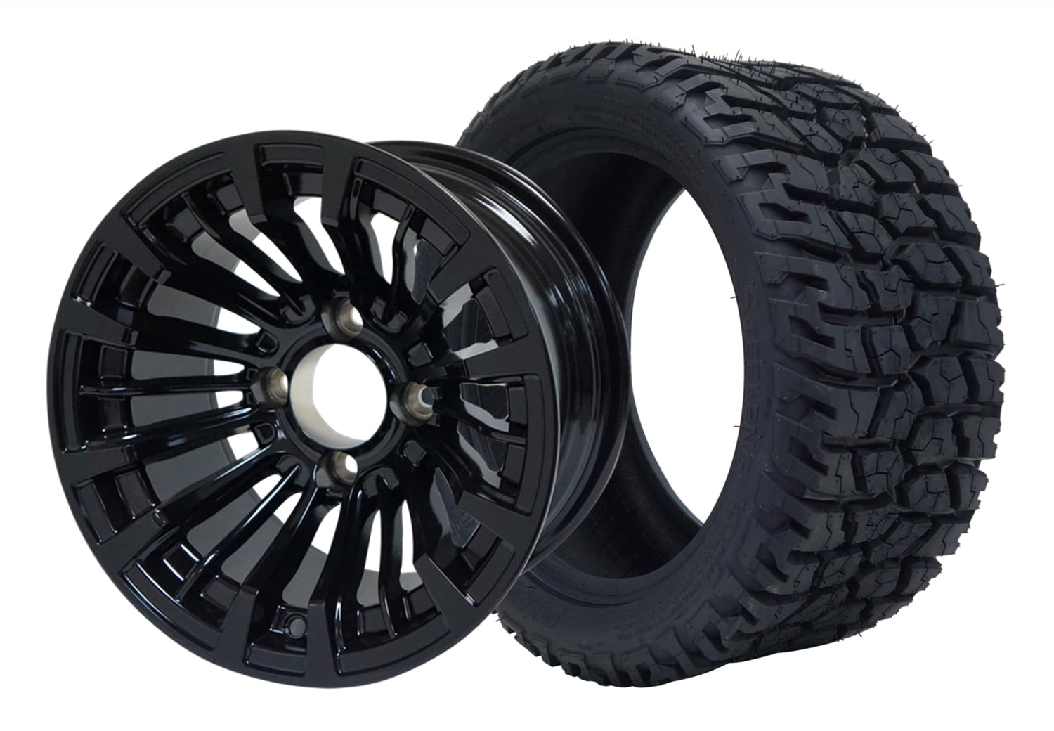 SGC 12" Matador Glossy Black Wheel - Aluminum Alloy / STEELENG 215/40-12 GATOR Hybrid Low Profile / All Terrain Tire DOT Approved Tires Combo - Set of 4