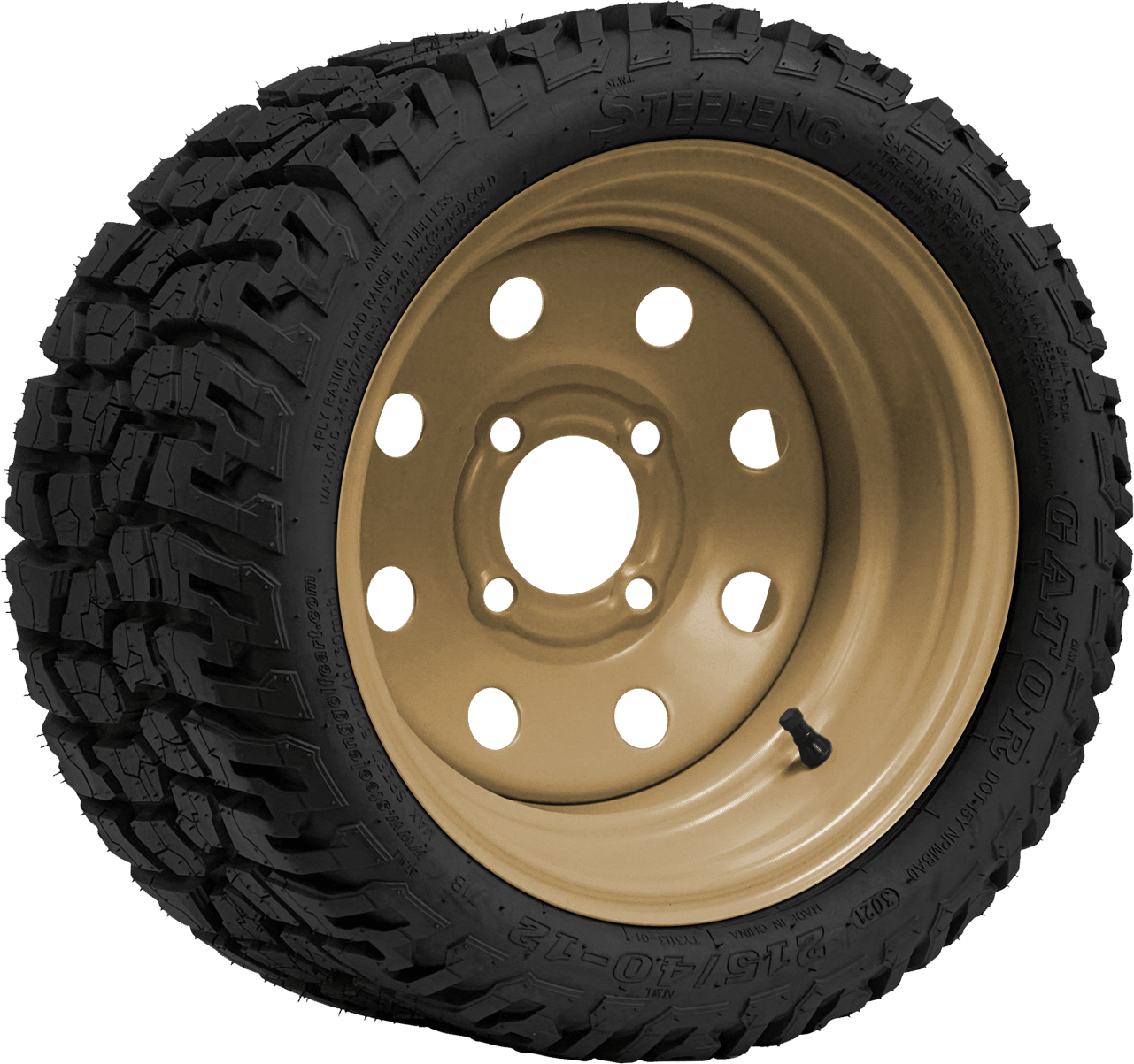 SGC 12" Steel Wheel - Desert Sand - 8 Holes / STEELENG 215/40-12 Hybrid Low Profile / All Terrain Tire DOT Approved Tires Combo - Set of 4