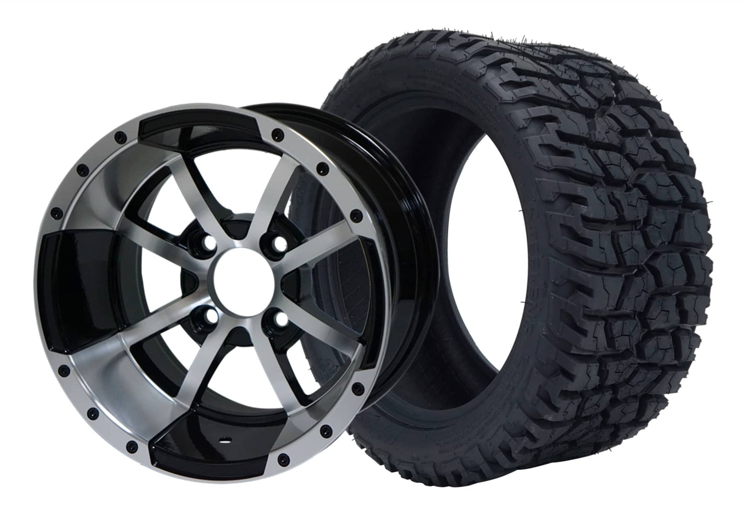 SGC 12" Storm Trooper Machined/Black Wheel - Aluminum Alloy / STEELENG 215/40-12 GATOR Hybrid Low Profile / All Terrain Tire DOT Approved Tires Combo - Set of 4