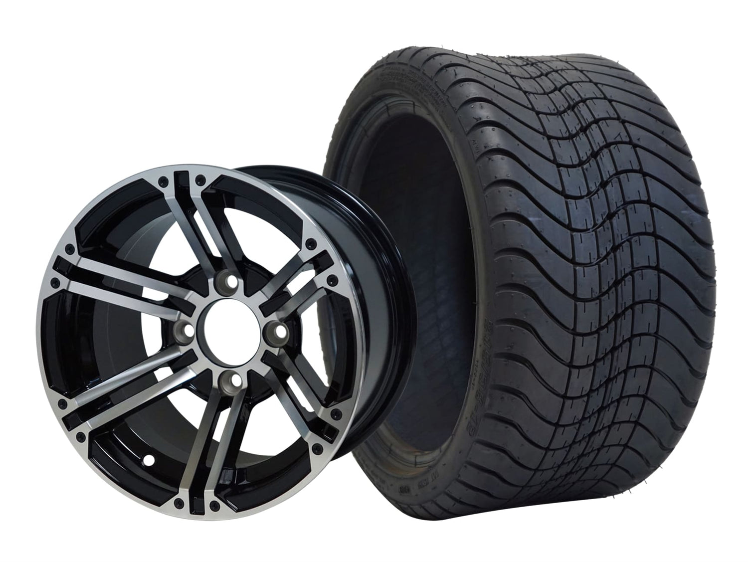 SGC 12" Terminator Machined/Black Wheel - Aluminum Alloy / STEELENG 215/35-12 Low Profile Tire Tires Combo - Set of 4