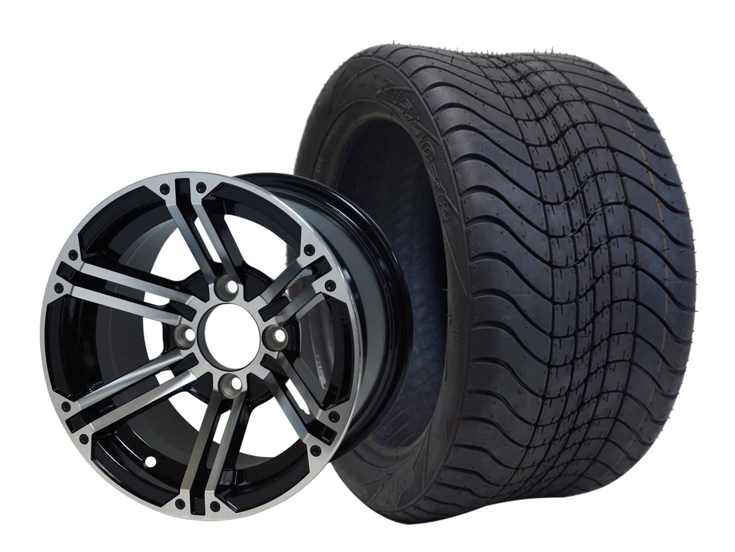 SGC 12" Terminator Machined/Black Wheel - Aluminum Alloy / STEELENG 215/40-12 Low Profile Tire DOT Approved Tires Combo - Set of 4