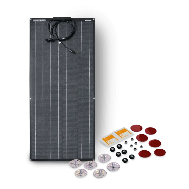 Semi-flexible, marine grade solar panel on a ruggedized waterproof backing. Optimal for rooftops and boat decks. Not designed for walking on. Foot traffic will reduce the lifespan and warranty of the panel.