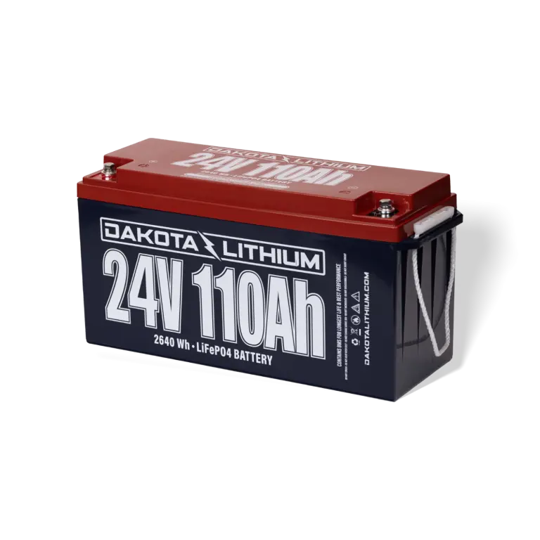 Built Dakota tough and with exceptional energy density, this single 24V lithium battery will power your passion from morning to night. Engineered with Lithium Iron Phosphate (LiFePO4) technology, this single battery has three times the power, one third the weight, and lasts 5 times longer than a lead acid battery - providing exceptional lifetime value. Built for endurance in rugged environments and cold conditions, this battery has a cycle life of 3,000 - 6,000 recharge cycles (8-10 years at regular use) and is backed up by a best in class 11 year warranty. 110 Amp hours (Ah) of capacity is optimal for a full day of fishing with 24V trolling motors, or to be linked in series or parallel for solar energy storage in the home, RV, boat, or off grid applications. Ideal for deep cycle applications in marine environments where you need lots of power for a long time. This battery is a re-engineered version of DL's legendary 24V 60Ah single lithium battery but with twice the capacity. Free LiFePO4 battery charger included.