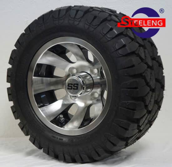 SGC 10" Revolver Machined/Black Wheel - Aluminum Alloy / STEELENG 18"x9"-10" STINGER All Terrain Tire DOT approved Tires Combo - Set of 4