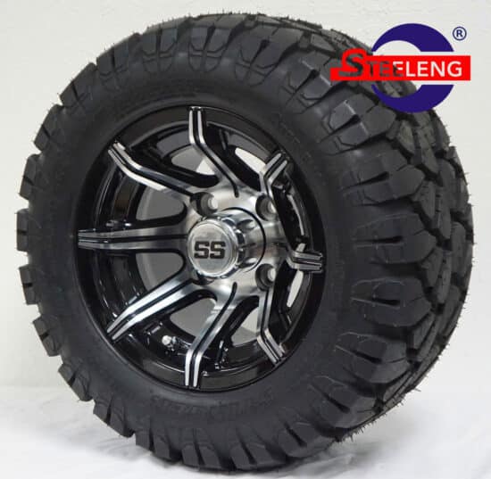 SGC 10" Spider Machined/Black Wheel - Aluminum Alloy / STEELENG 18"x9"-10" STINGER All Terrain Tire DOT approved Tires Combo - Set of 4