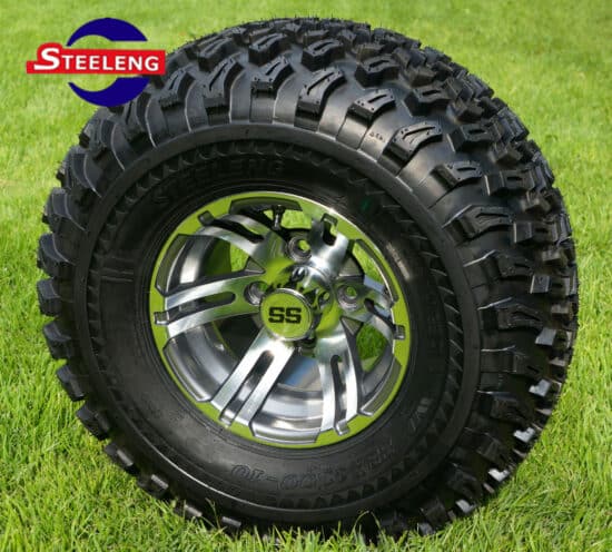 SGC 10" Bulldog Machined/Gunmetal Wheel - Aluminum Alloy / STEELENG 22"x11"-10" All Terrain Tire DOT approved Tires Combo - Set of 4