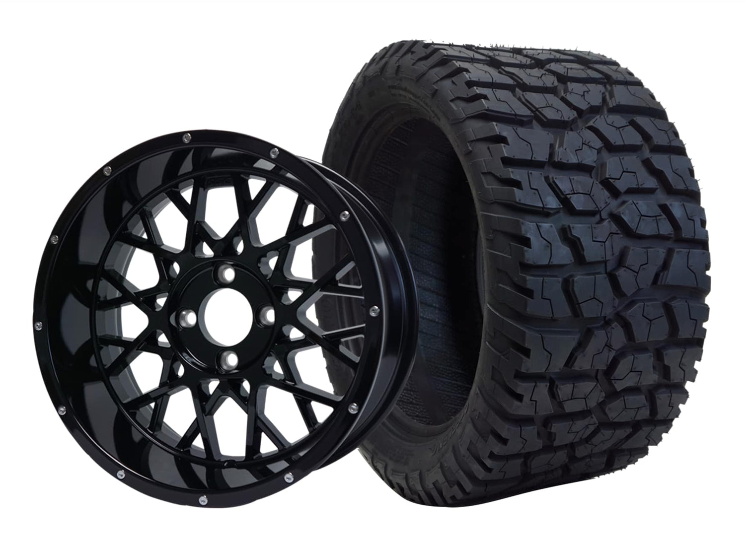 SGC 14" Venom Glossy Black Wheel - Aluminum Alloy / STEELENG 22"x10.5"-14" GATOR All Terrain Tire DOT Approved Tires Combo - Set of 4