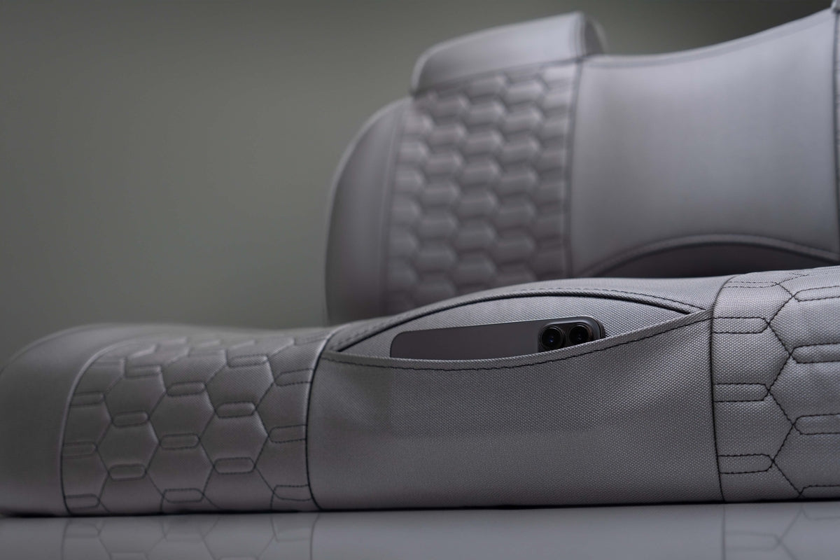 • Integrated Headrests & storage pocket for personal items such as cellphones