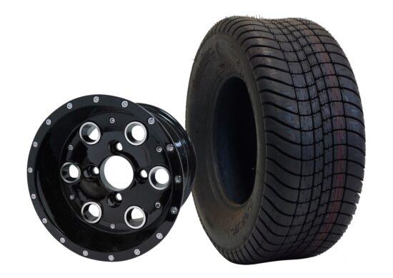 SGC 10" Pioneer Glossy Black Wheel - Aluminum Alloy / STEELENG 205/65-10 Comfort Ride Street Tire DOT approved Tires Combo - Set of 4